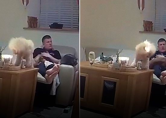 En redes se ha viralizado un video de Escocia en el que un perro caniche preparado para competir en Crufts, la exposición canina más grande del mundo, se prendió fuego accidentalmente al acercarse a una vela. Las cámaras captaron el momento en que su melena blanca se enciende mientras su amo mira la televisión, hasta que reacciona y la apaga entre gritos. El incidente ocurrió tres días antes del concurso, pero, pese al pelo chamuscado, el perro logró el segundo puesto en una de las categorías.
