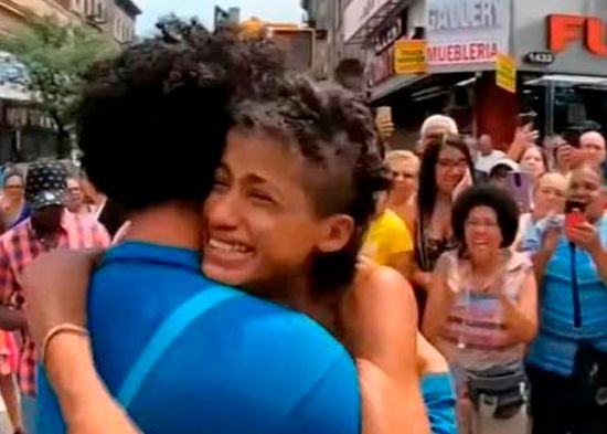 La reportera Gelena Solano, que sacó la historia, fue testigo del momento en que Susy Pérez alcanza a ver a su hijo de 19 años y corre hacia él fundiéndose en un abrazo en medio del llanto.