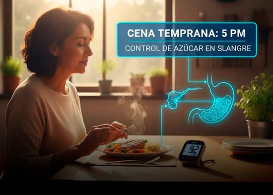 La sensibilidad a la insulina, hormona que regula el azúcar en la sangre, alcanza su punto máximo temprano. Cenar antes evita sobrecargar el sistema cuando el organismo ya se prepara para el descanso nocturno.